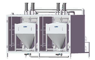 優(yōu)康恩自動化料系統(tǒng)用于對粉料和其它配料進行乳化和水化的混料系統(tǒng)設(shè)備。其中真空混料機可在密閉真空容器下進行高速剪切乳化混合綜合產(chǎn)品、各種粉末和液體等,每小時化粉量可達到3T-5T。優(yōu)康恩自動化料系統(tǒng)可利用真空作用將配料輸送到化料設(shè)備中,省去了操作工承擔這項繁重工作的需要。